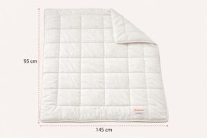 %100 pamuk kumaşı ve hafif silikon elyaf dolgusu sayesinde bebeğiniz için yumuşak, nefes alabilir ve konforlu bir uyku sunar. 95×145 cm ölçüsüyle beşik ve bebek yatakları için idealdir.