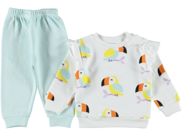 Tropik Desenli Unisex Bebek Eşofman Takımı | Renkli Papağan Baskılı Mevsimlik Takım